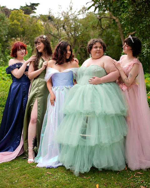 Sapphic Dream is inspired by the queer experience. It is everything I think of when romanticizing my life. A warm summer day. Basking in the shade with scattered sunlight across your body. The light summer breeze and the sounds of the leaves brushing against each other. Delicate hands brushing across velvet collarbones. Soft lips whispering secrets to someone. This collection is a dream. It is romantic, feminine, and gay. My audience is not everyone. My audience is someone like myself; carefree enough to wear a gown to the grocery store because wearing that garment is what makes them most happy. Impractical to those who only care about practicality and utilitarian design.